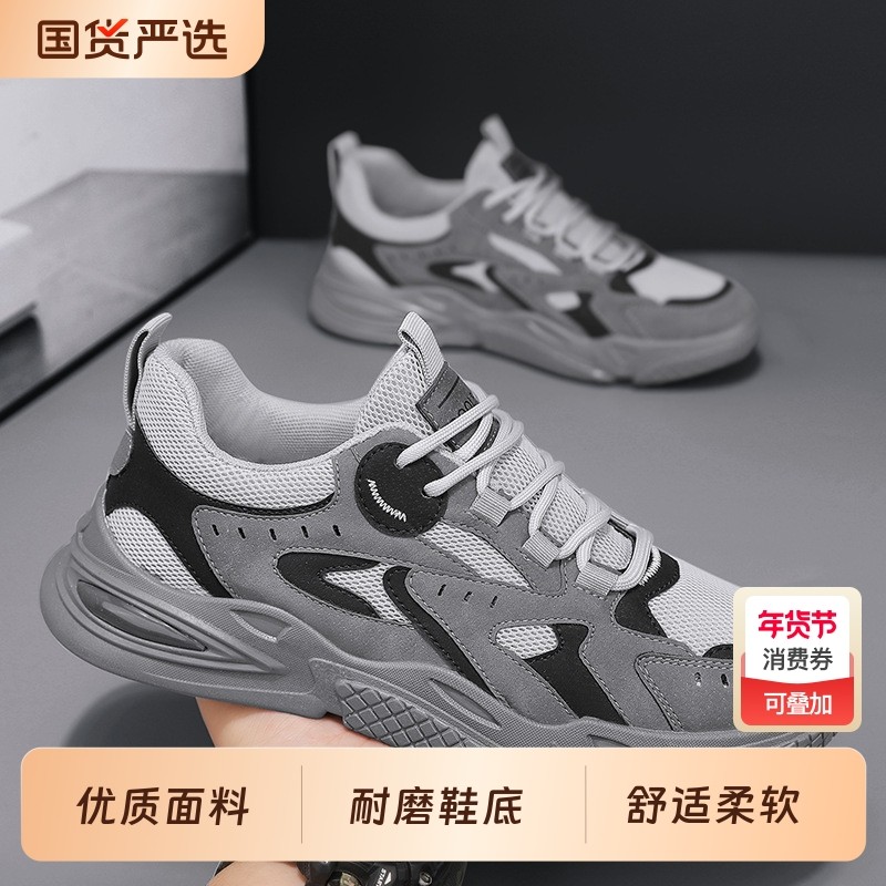 网面拼接老爹鞋男新款夏季休闲韩版百搭男鞋厚底透气青少年运动鞋