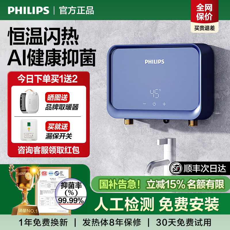 飞利浦电热水龙头即热式加热器快速厨房宝热水器家用过水热免安装