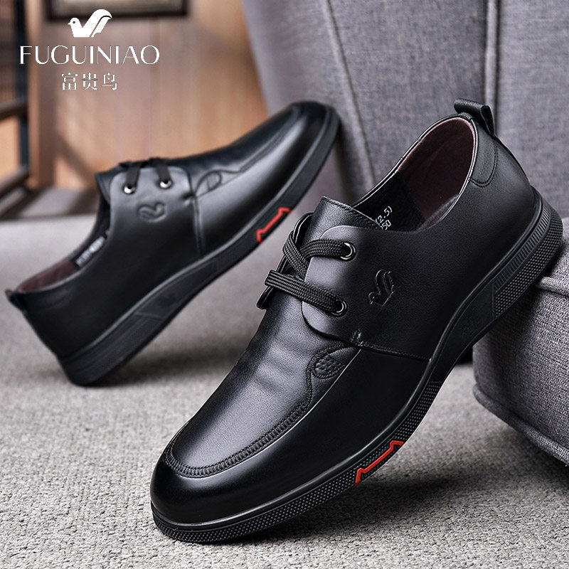 富贵鸟春新款男皮鞋休闲小码系带内增高6CM商务透气大码男韩板鞋