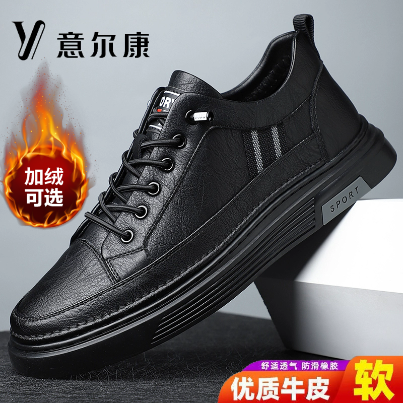 康奈男鞋2025新款真皮软底加绒潮流百搭运动休闲皮鞋男士韩板鞋