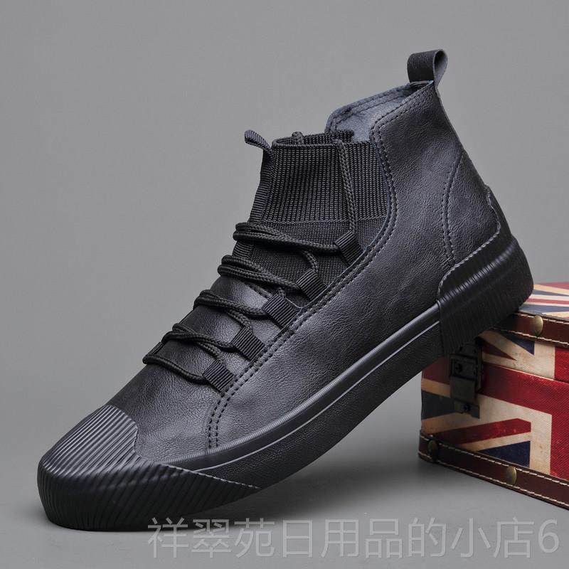 高帮牛皮休闲小白鞋内增高潮男百搭鞋防滑透气软底运动真皮韩板鞋