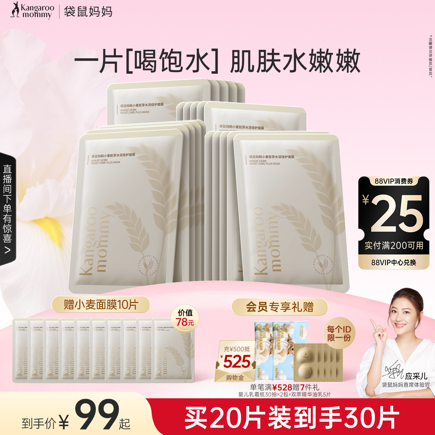 袋鼠妈妈小麦面膜补水女滋润面部护肤精华面部护理护肤品可用保湿