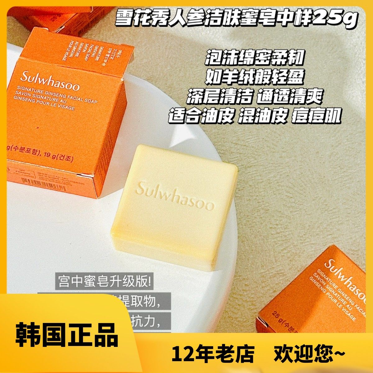 韩国雪花秀宫中蜜皂人参皂洗脸皂25g小样试用装手工皂油痘学生