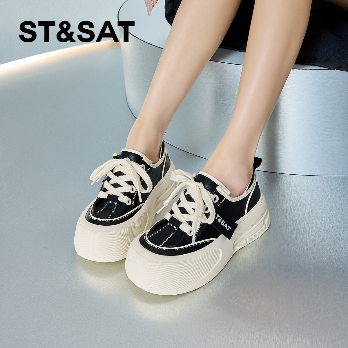 - 圆头系带小白鞋