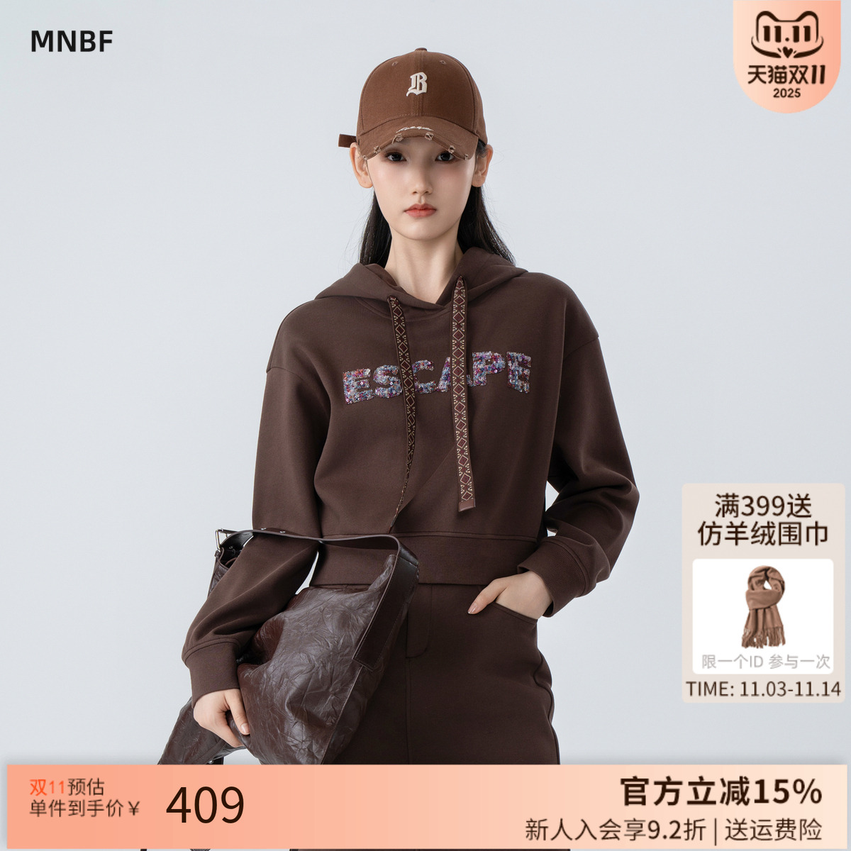 冬季连帽卫衣女2025新款棕色字母上衣长袖宽松学院风卫衣百搭休闲