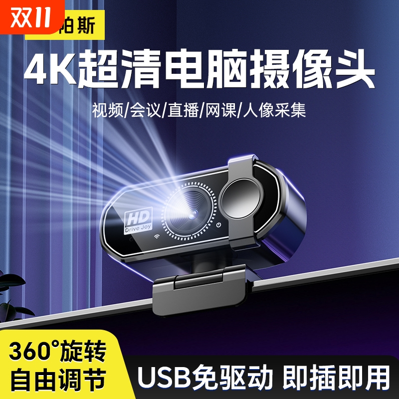 高清台式4K电脑摄像头带麦克风美颜直播800万免驱动笔记本摄影头