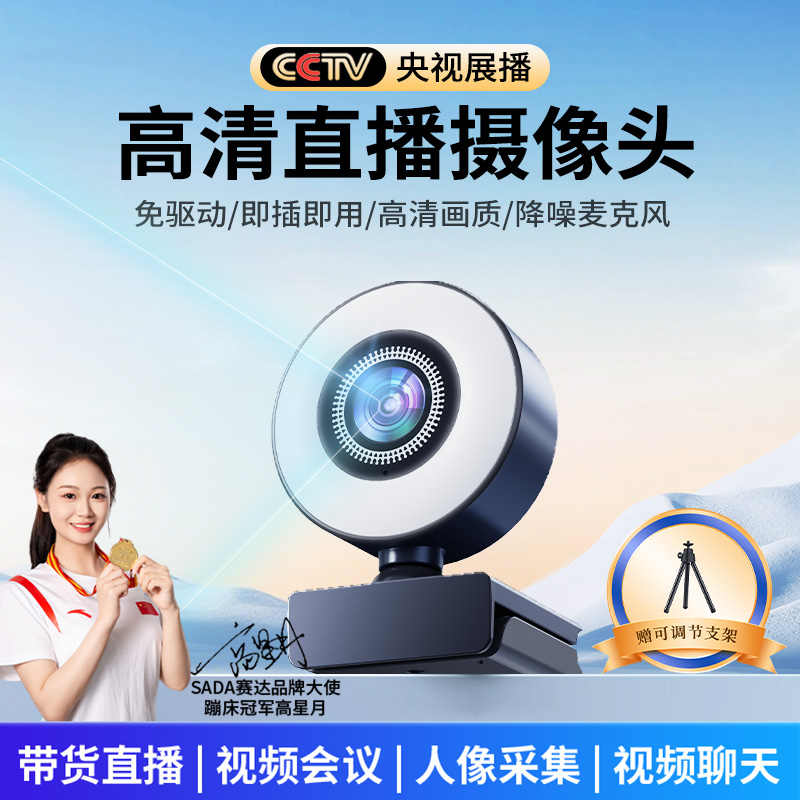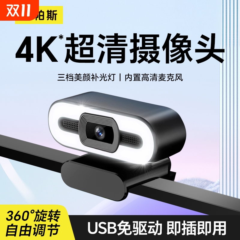 美颜直播摄像头4k超高清补光灯笔记本台式电脑外接主播专用摄像头