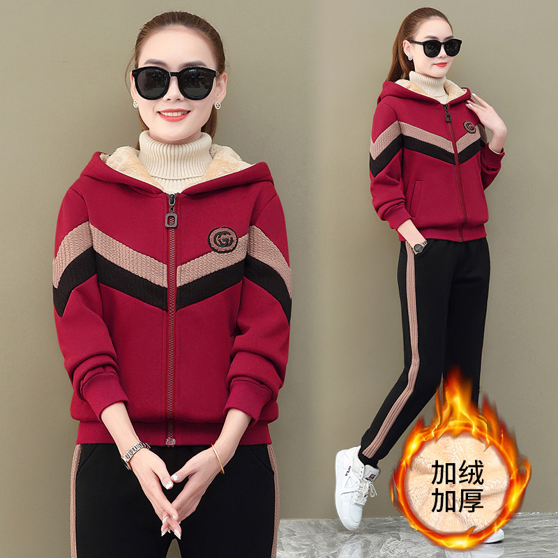 三件套新款女装加绒加厚冬季连帽卫衣女休闲保暖运动服时尚套装潮
