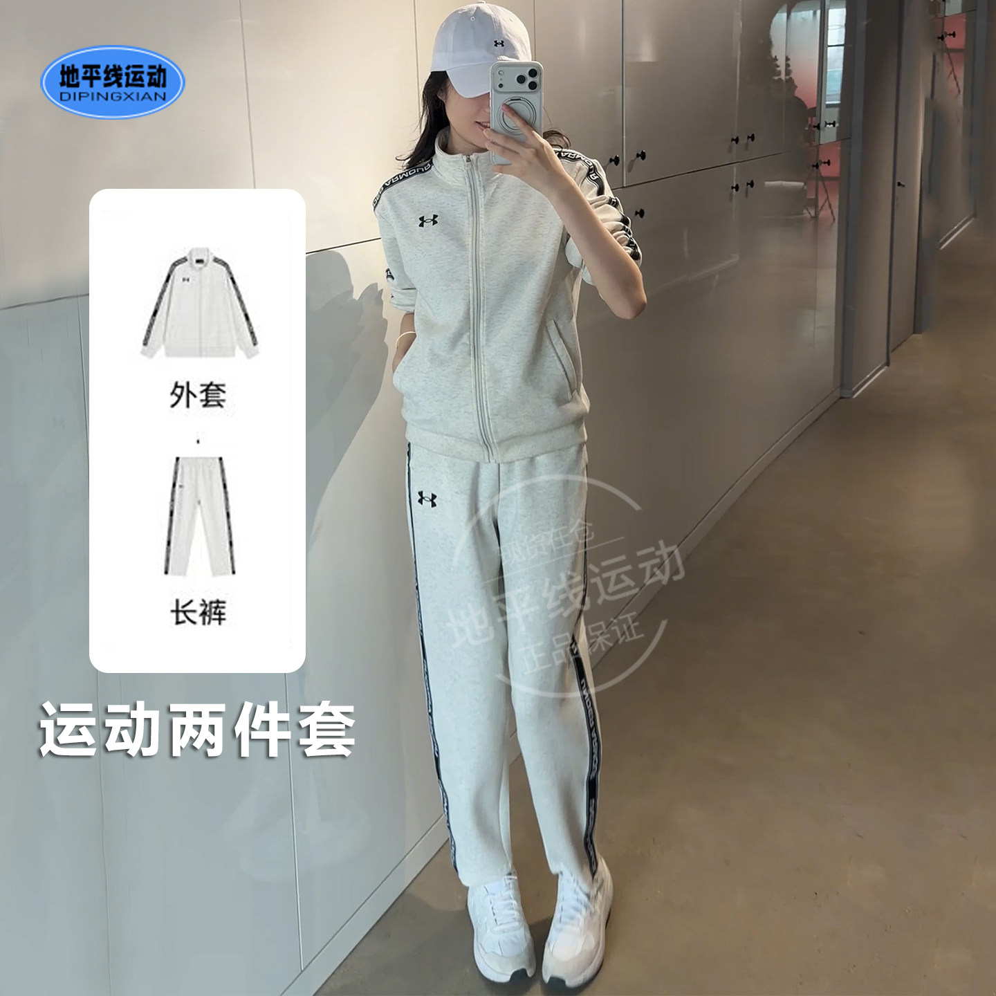 安德玛女子运动两件套春季新款时尚潮流针织立领外套长裤休闲套装
