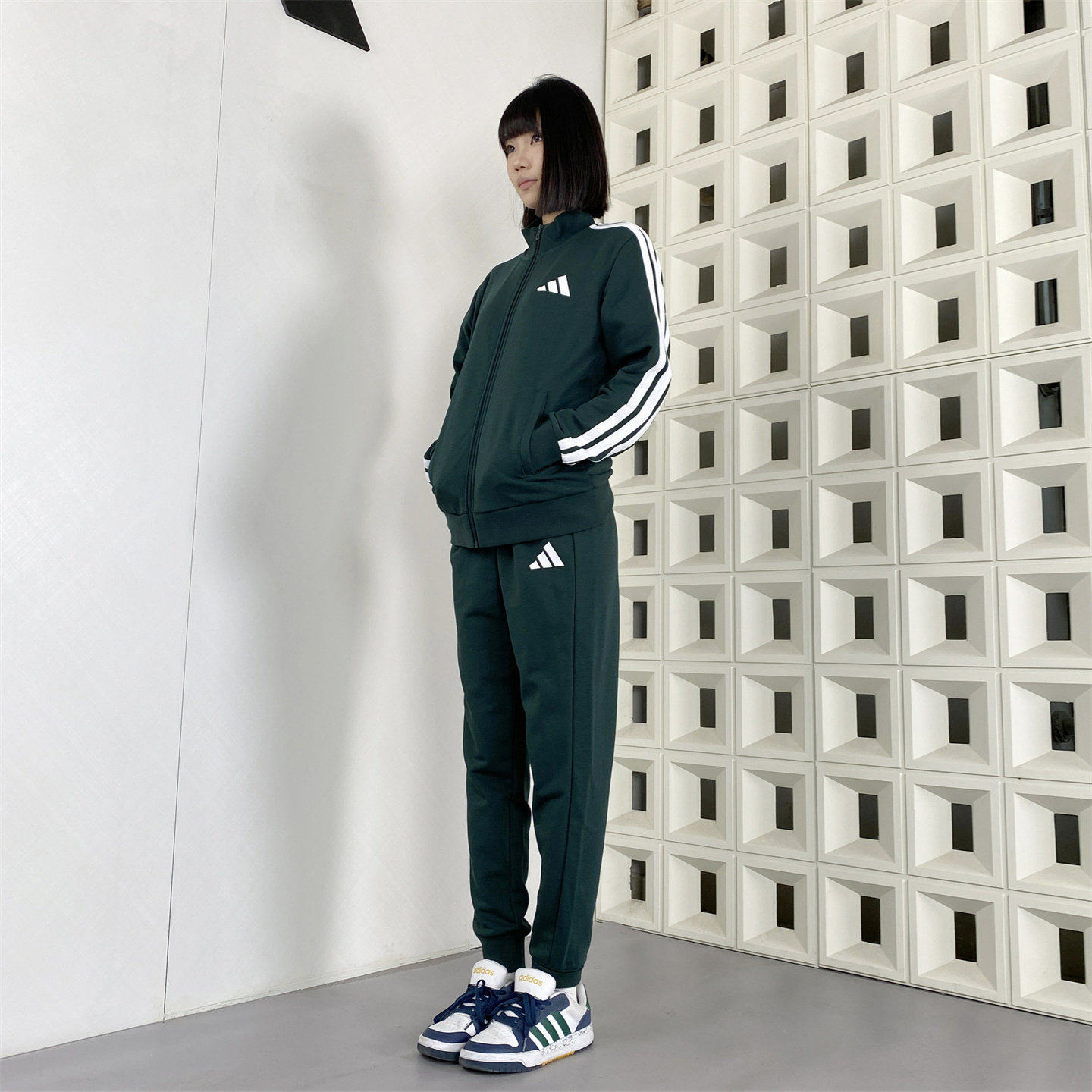 阿迪达斯运动套装新款男女时尚潮流运动透气休闲立领套装JZ0110