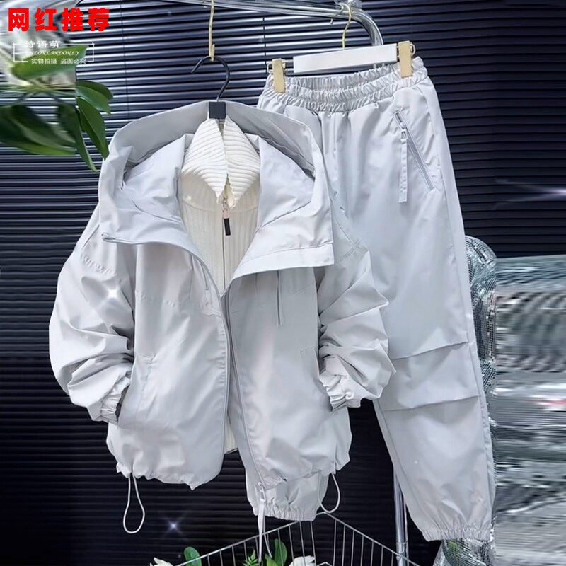 高级感运动服套装女春秋时尚宽松户外休闲冲锋衣外套跑步两件套潮
