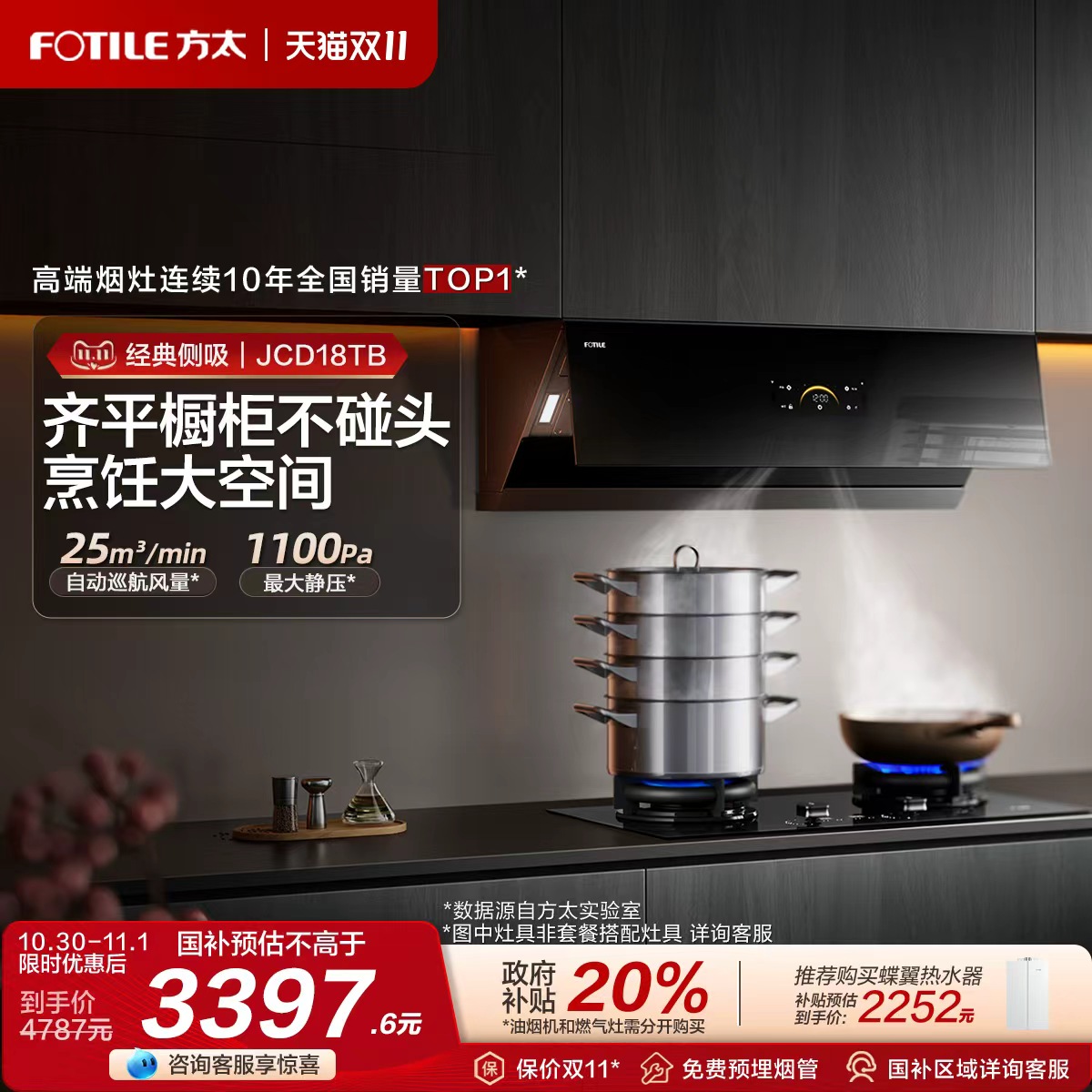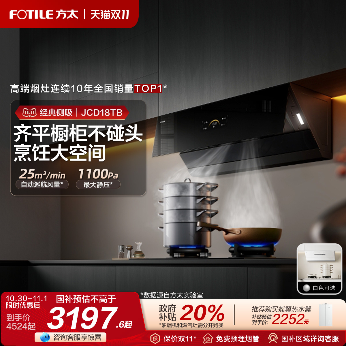 方太JND1侧吸变频抽油烟机燃气灶套餐烟机灶具三件套装官方旗舰店