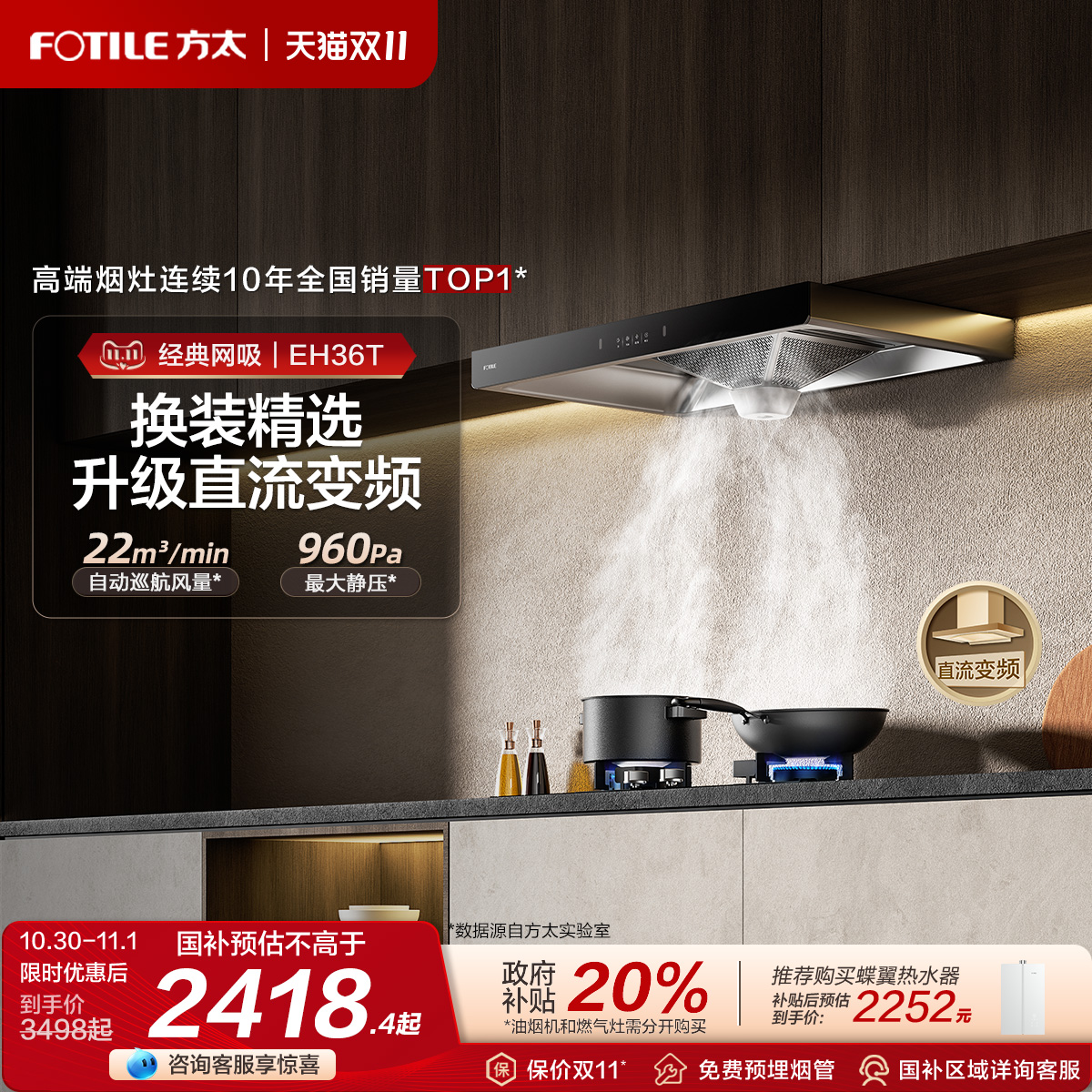 [经典网吸]方太EH36T抽吸油烟机燃气灶具厨房官方旗舰店套装套餐