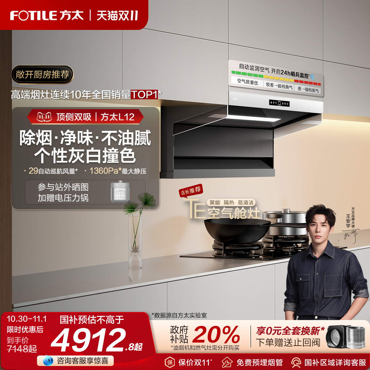 [顶侧双吸]方太L12白色抽油烟机燃气灶具厨房家用官方旗舰店套餐