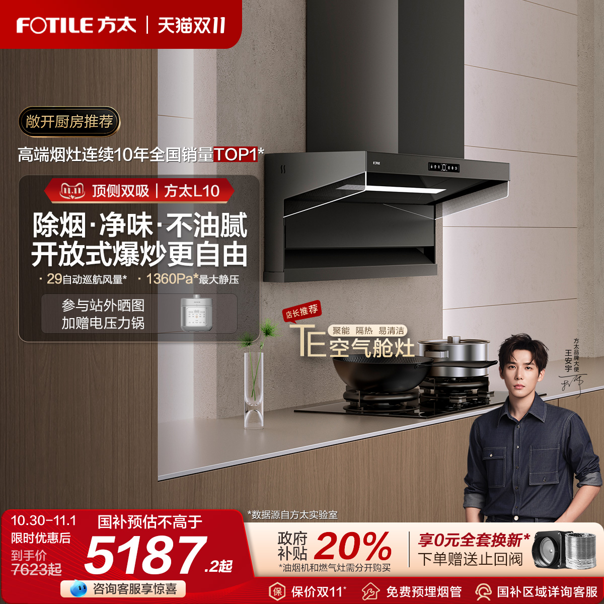 [顶侧双吸]方太L10抽油烟机燃气灶具厨房家用官方旗舰店套装套餐