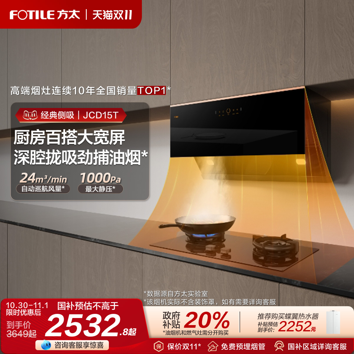 [经典侧吸]方太JCD15T抽吸油烟机燃气灶具家用官方旗舰店套装套餐