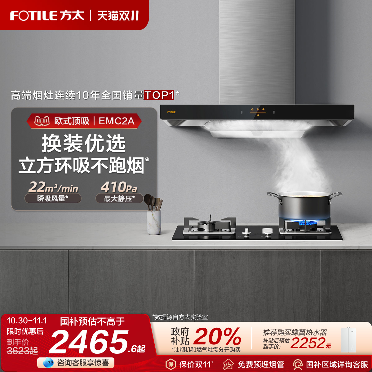 方太EMC2T顶吸欧式抽油烟机燃气灶具厨房家用官方旗舰店套装套餐