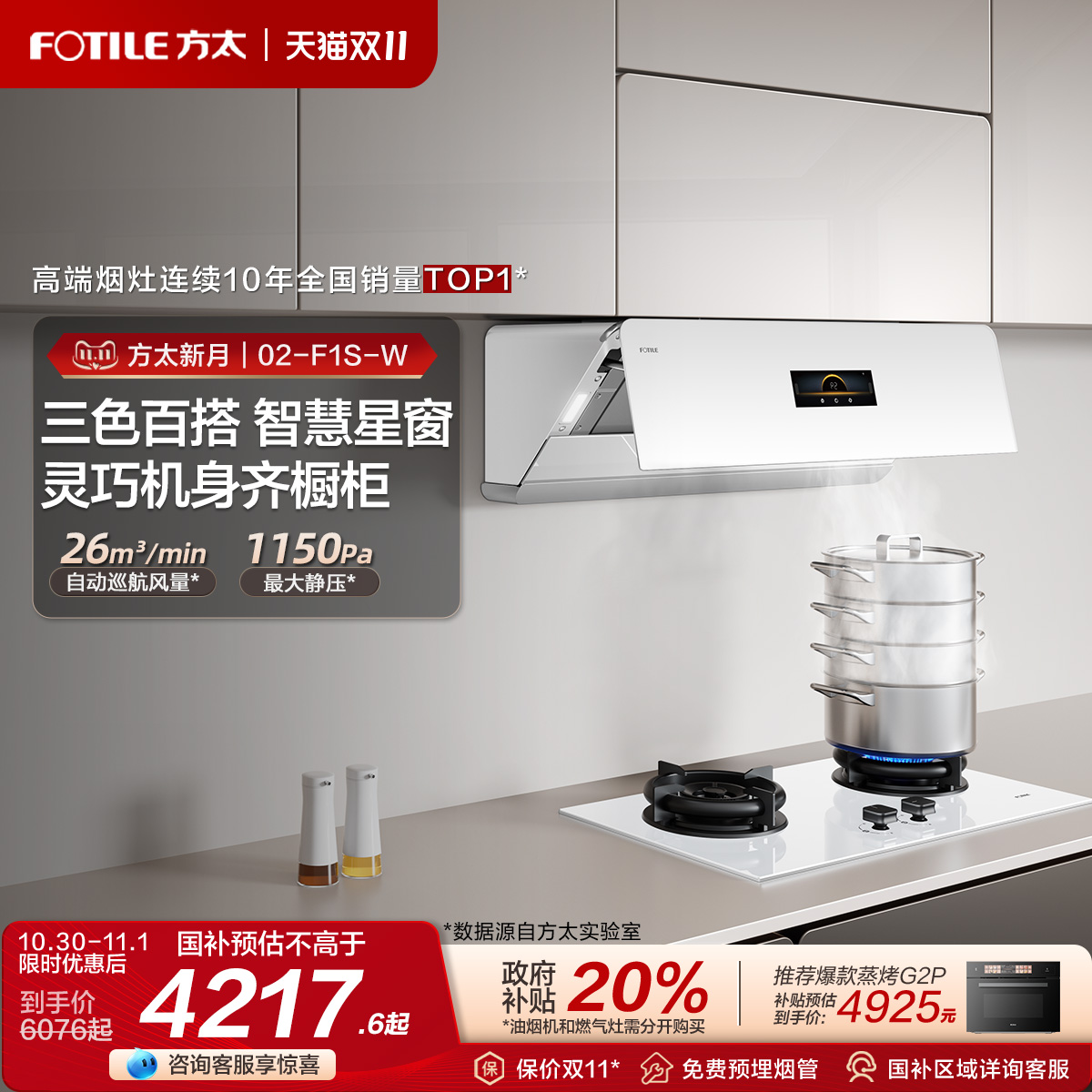方太新月02-F1S抽吸油烟机燃气灶具厨房家用官方旗舰店套装套餐