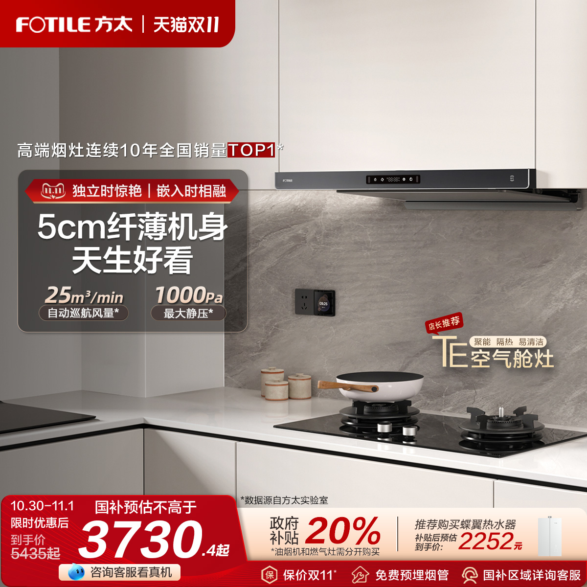 [纤薄顶吸]方太F3纤薄抽吸油烟机燃气灶具厨房官方旗舰店套装套餐