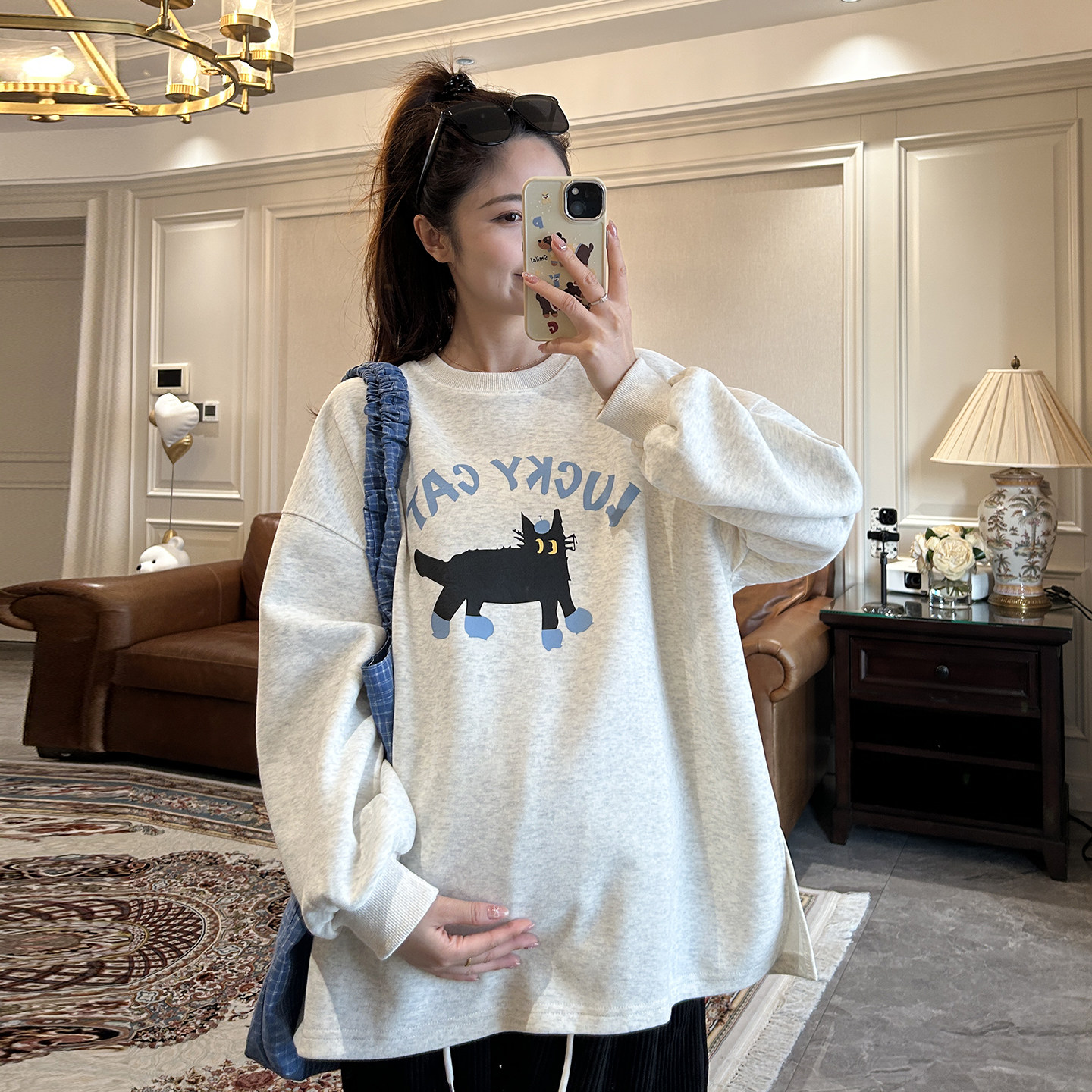 孕妇卫衣外套春秋卡通猫舒适休闲冬装上衣慵懒宽松圆领加绒打底衫