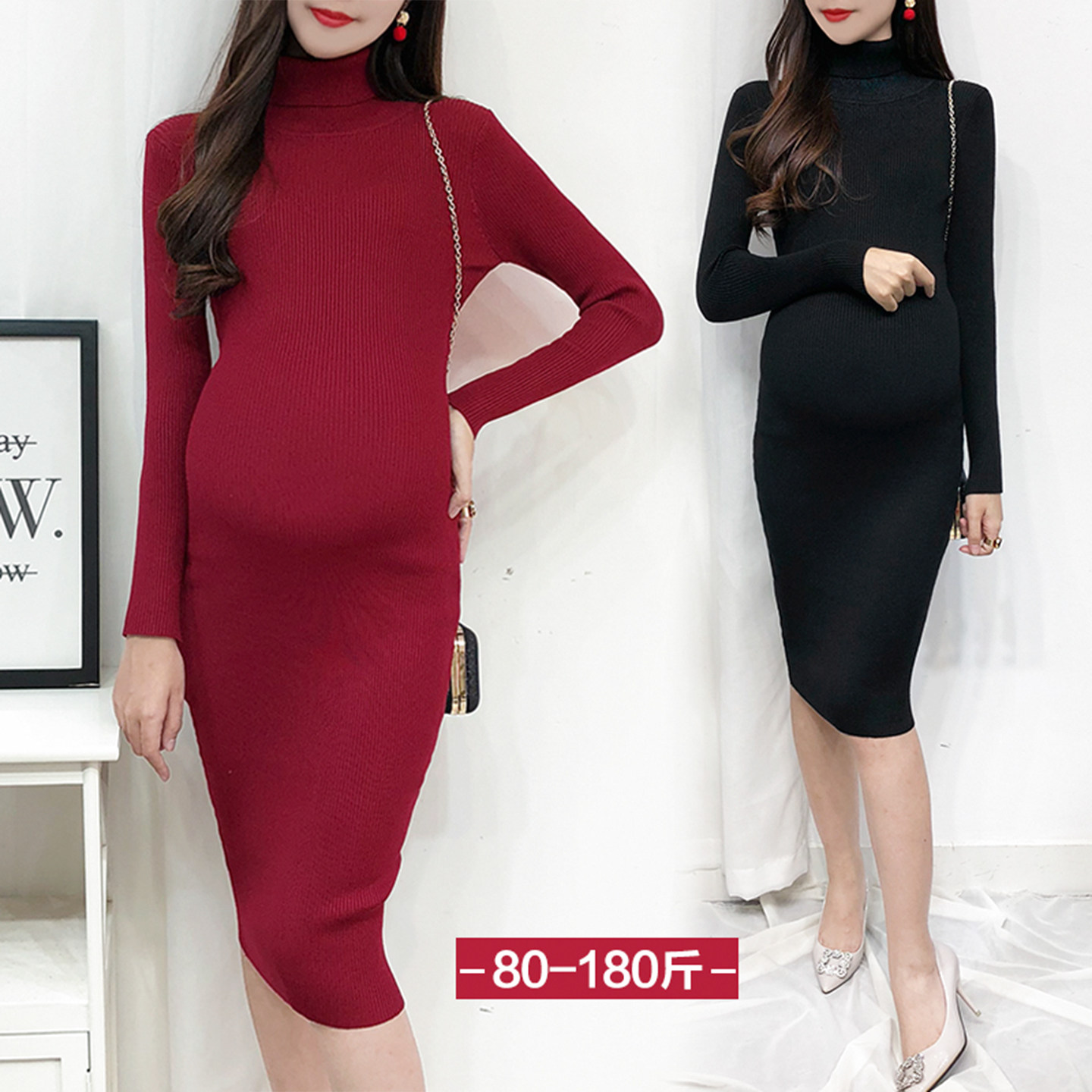 孕妇装冬装高领毛衣秋冬过年洋气长裙子套装内搭打底衫针织连衣裙