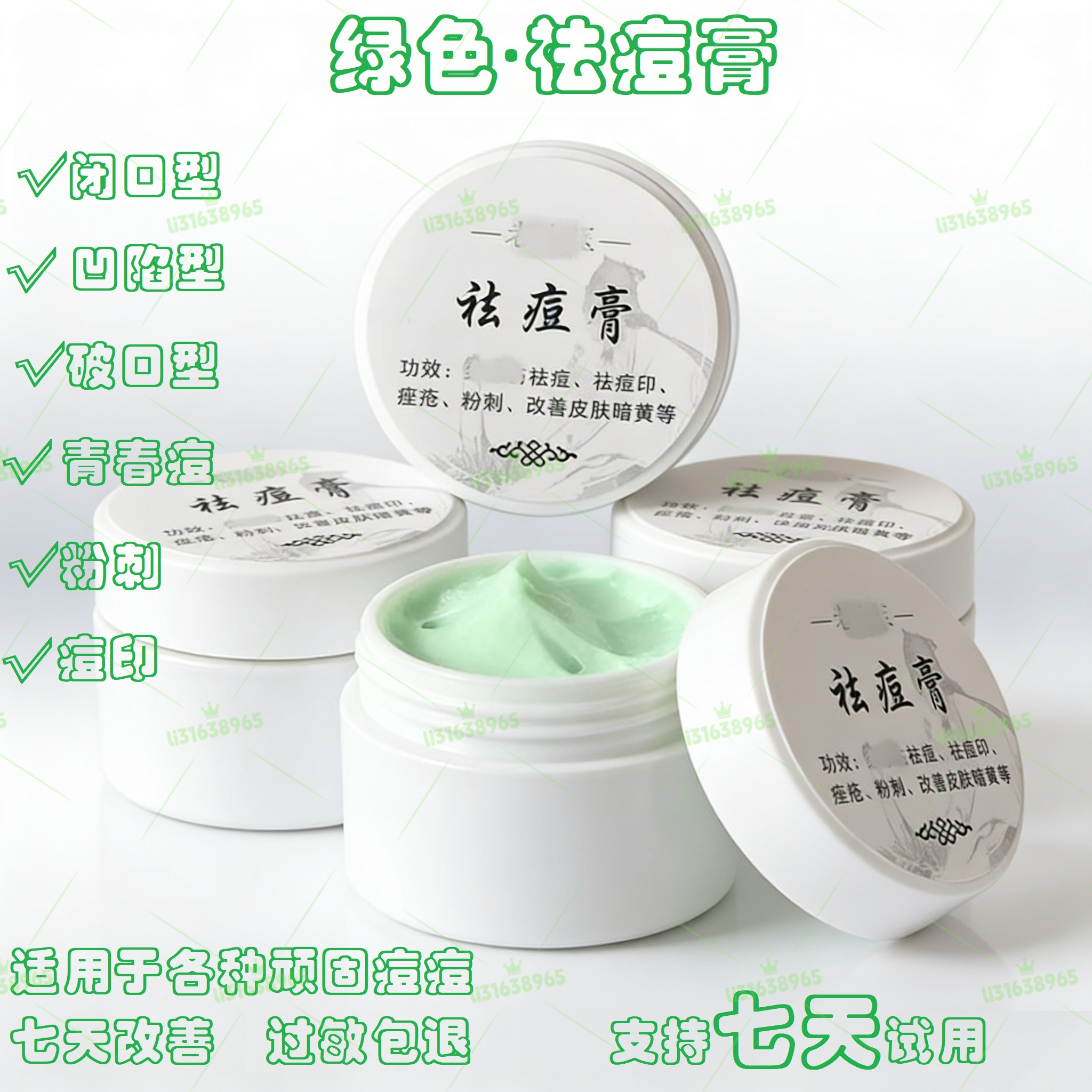 绿色祛痘膏快速祛痘淡化痘印温和修护不伤肤男女学生通用护肤产品