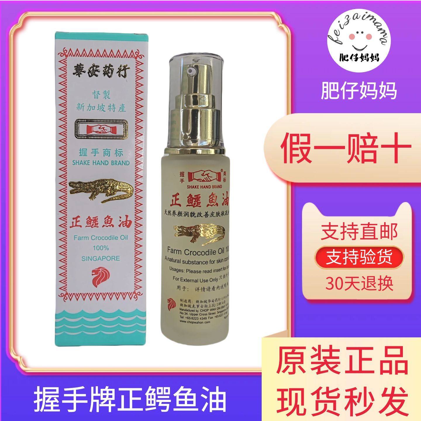 新加坡鳄鱼油正品原装 华安握手牌商标正鳄鱼油 天然护肤精油46ML