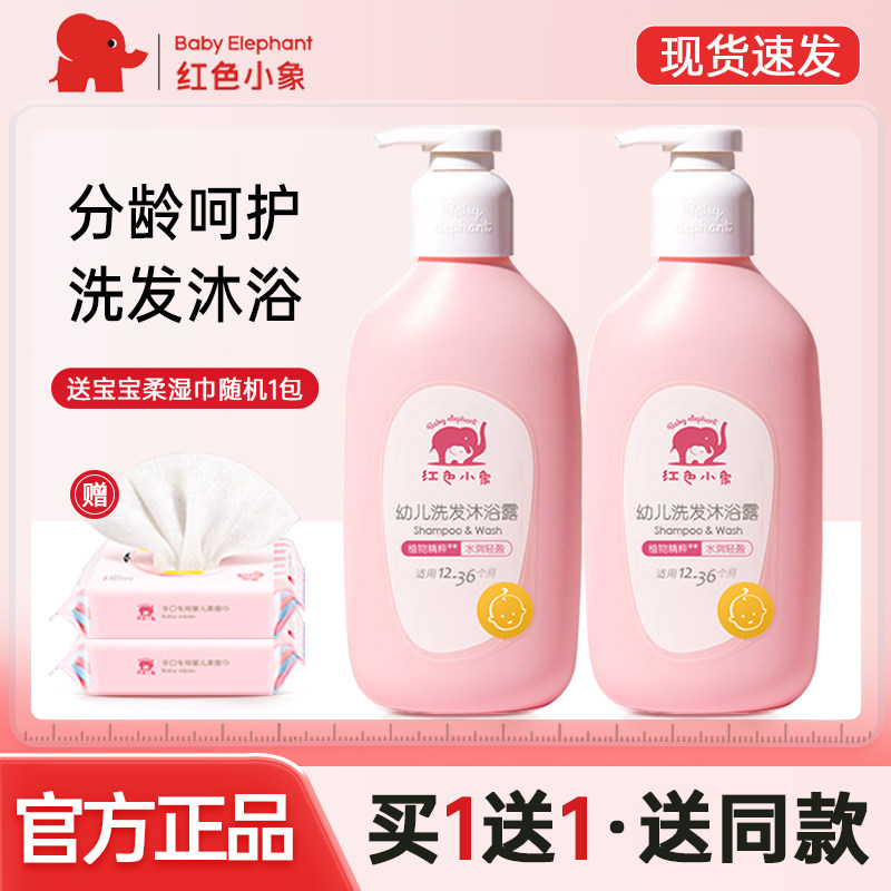 红色小象婴幼儿童洗发水沐浴露二合一新生儿宝宝天然护肤泡泡正品