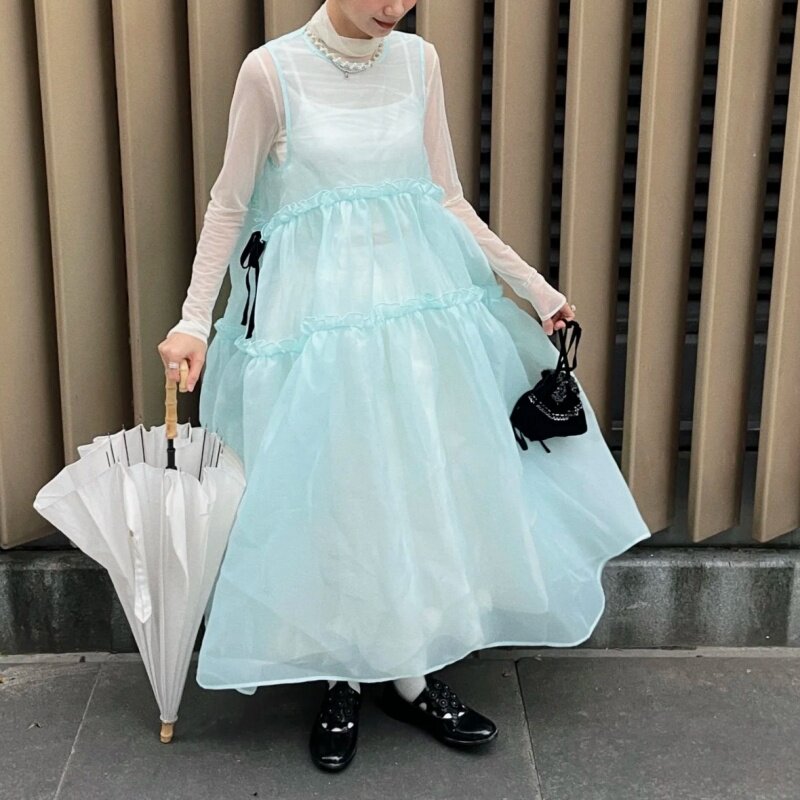- 欧根纱长裙连衣裙