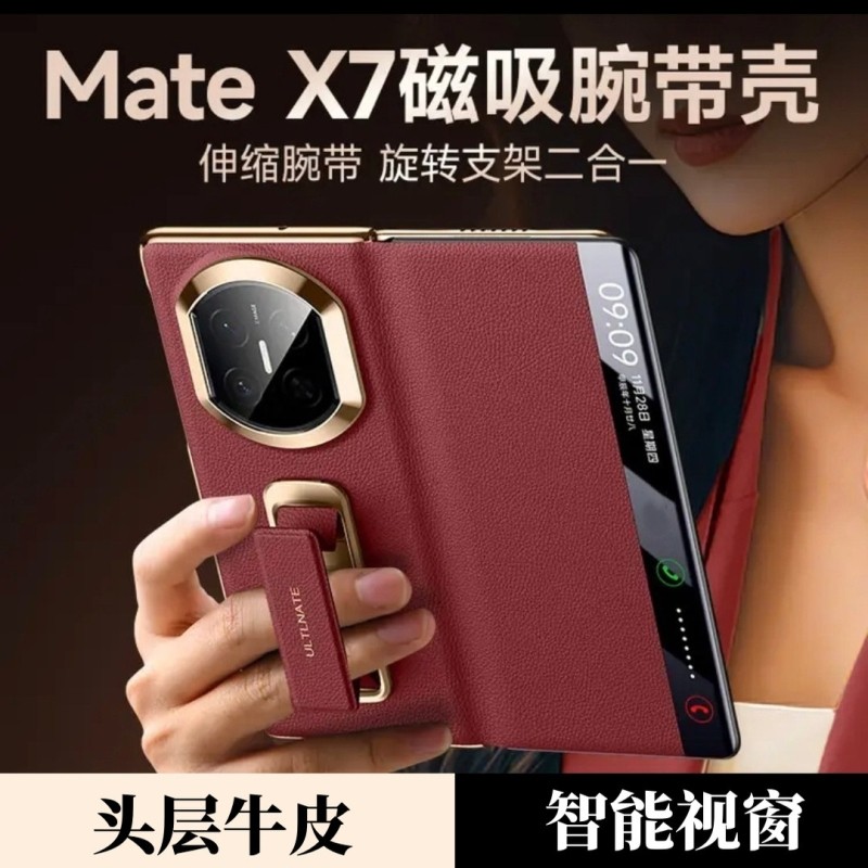 适用华为X7手机壳mateX6腕带支架智能视窗X5典藏版真皮商务男款镜头全包保护套+mateX3防摔磁吸翻盖潮流女款