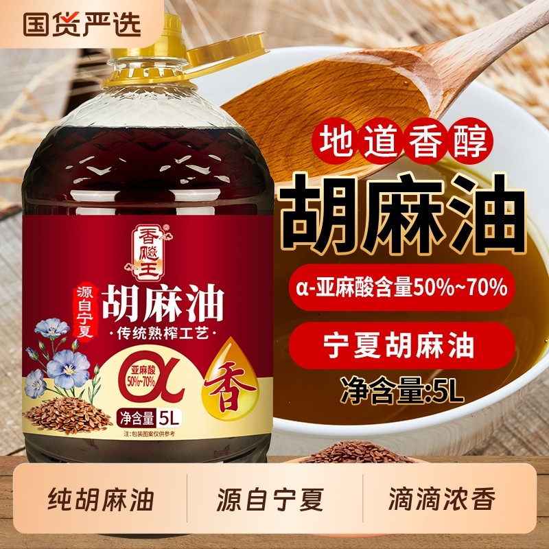 宁夏纯正胡麻油5L装大桶高亚麻酸浓香家庭健康凉拌食用油炒菜好油