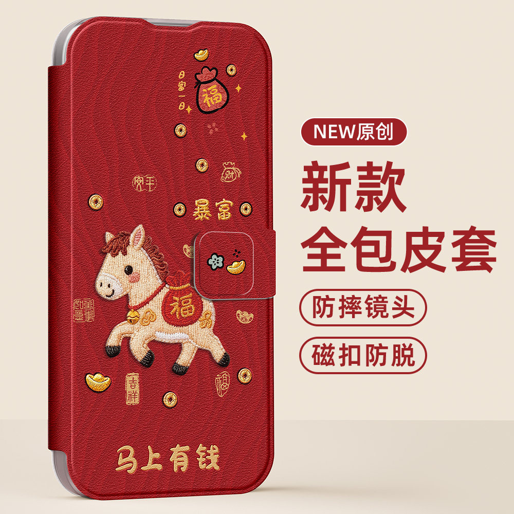 马年翻盖皮套适用苹果17air手机壳iPhone16promax国潮苹果14plus/Xs外壳8plus软se3插卡高级感12防摔13女7/6S