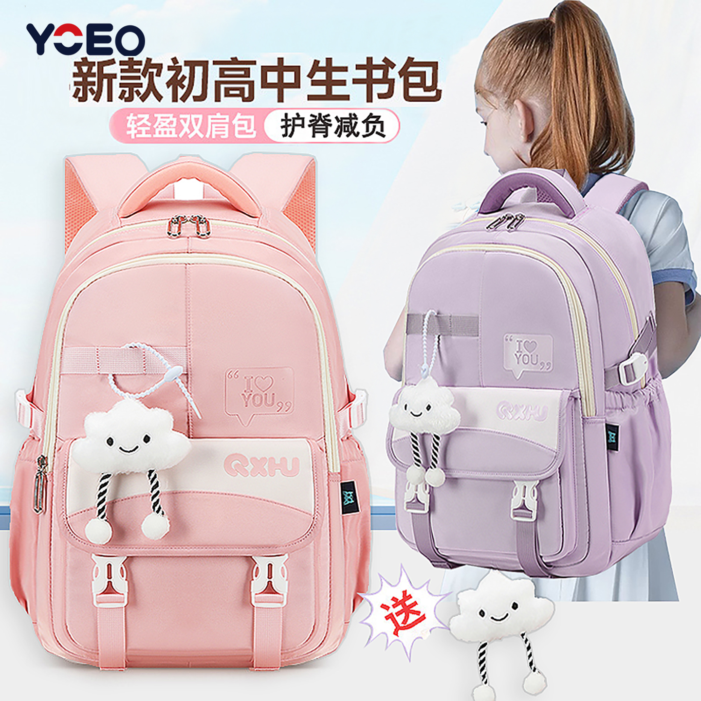 初中生书包女生小学生2025新款大容量高中生可爱轻便护脊旅行背包