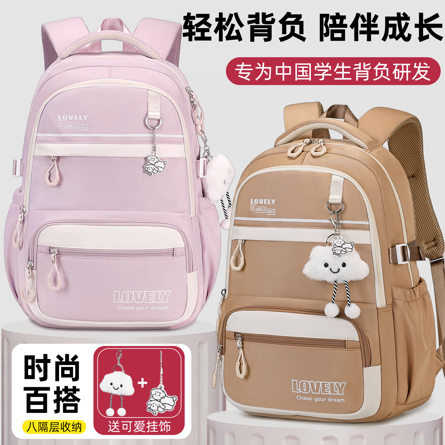简约儿童书包女孩小学生三到六年级减负轻便初中生书包女生双肩包