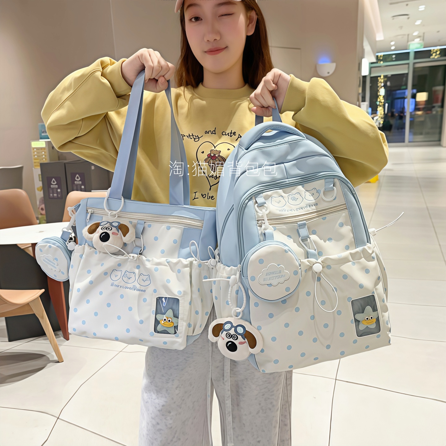 初中生书包女生小学生高颜值ins风双肩包波点蝴蝶结百搭背包高中