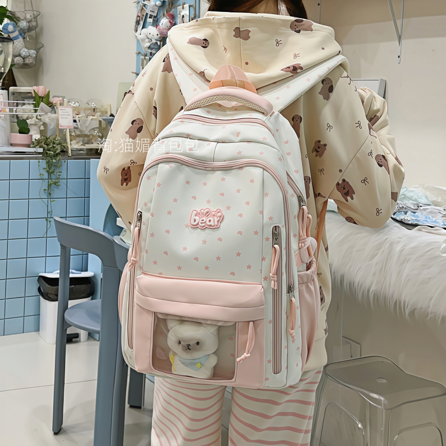 初中生书包女生小学生2025新款高颜值痛包双肩包高中星星背包百搭