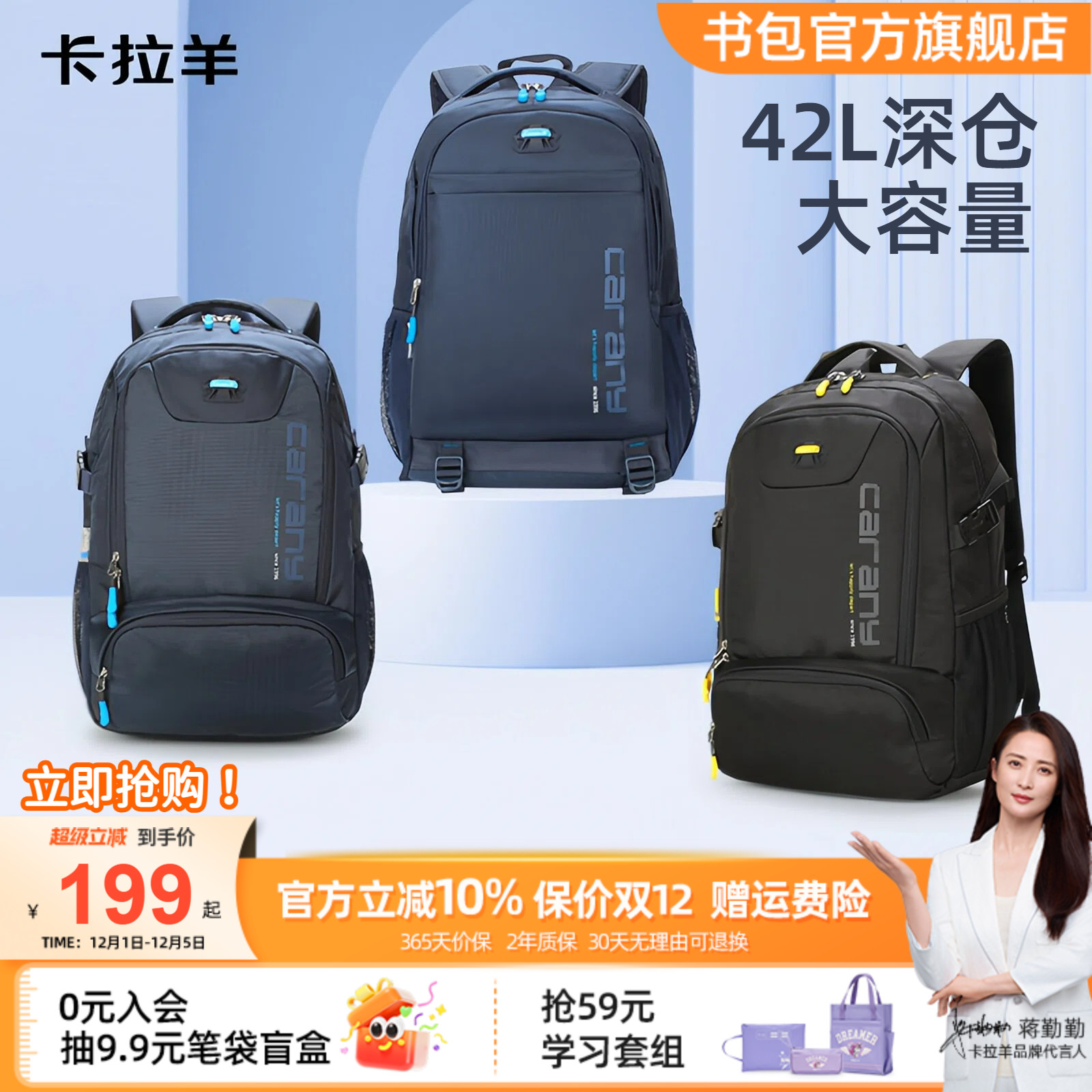 卡拉羊大容量高中学生书包初中女生防下坠减负双肩包轻便电脑包男