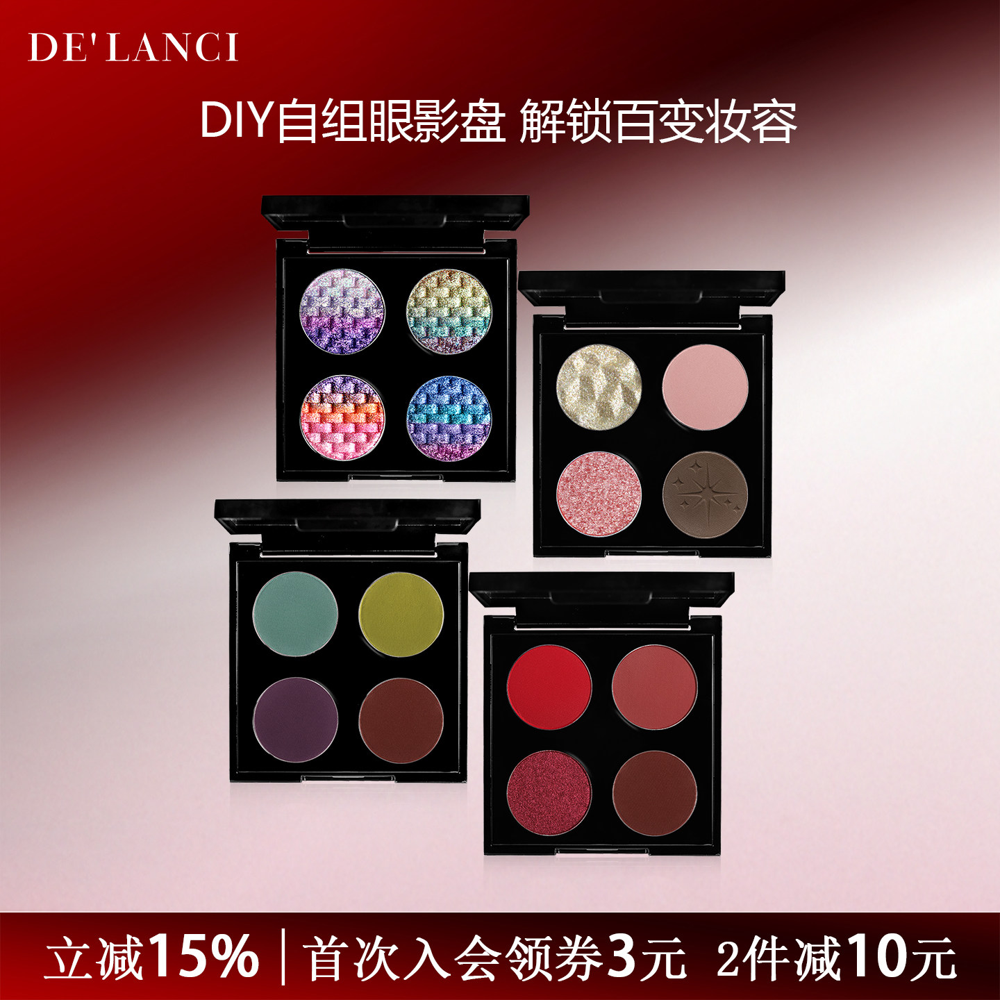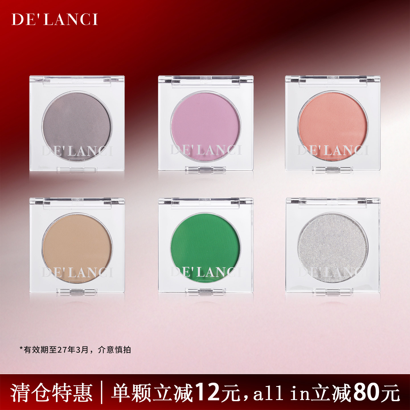【清仓特惠】DE'LANCI单色眼影盘多色系黑色绿色紫色彩色眼影盘