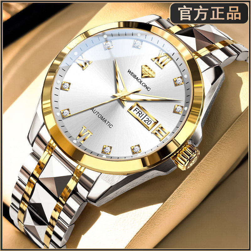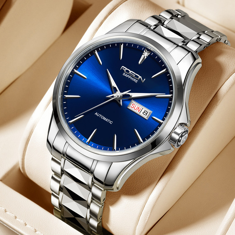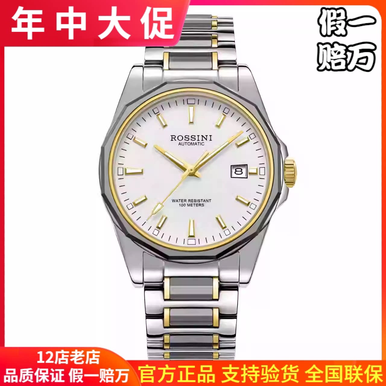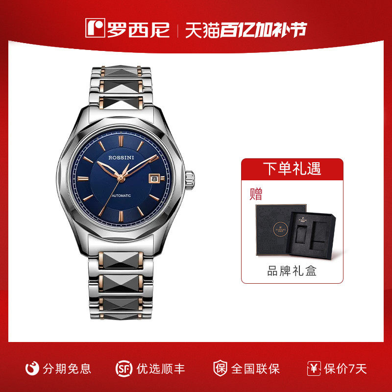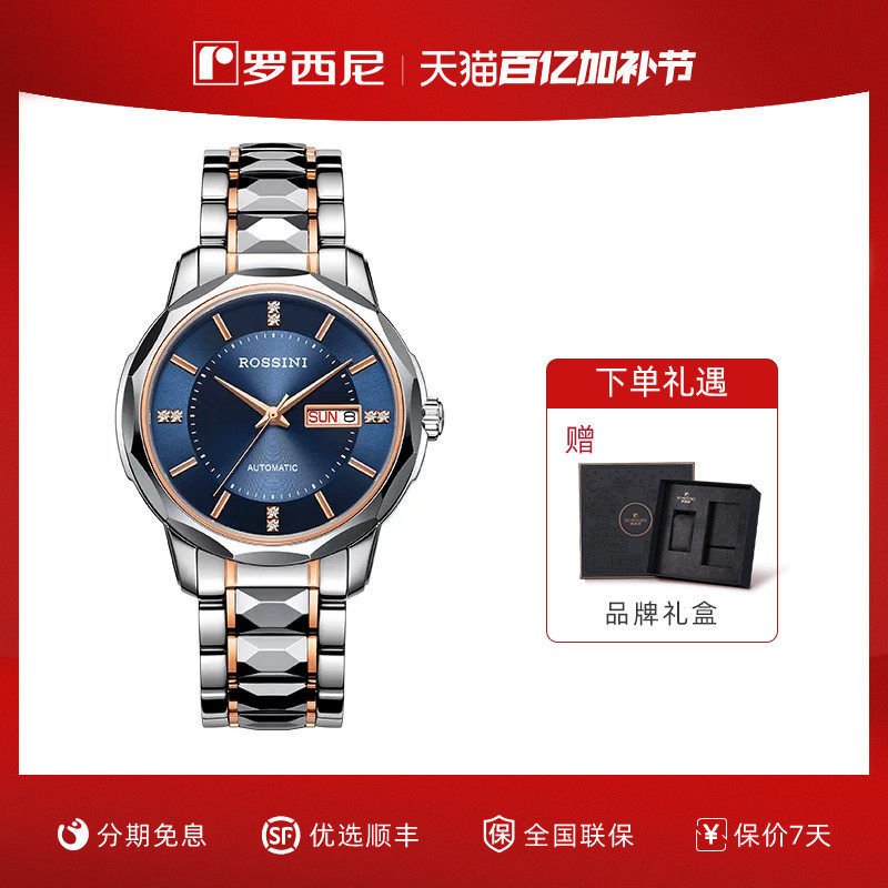 【AU999花钉】罗西尼手表男钨钢系列时尚机械表100米防水夜光男表