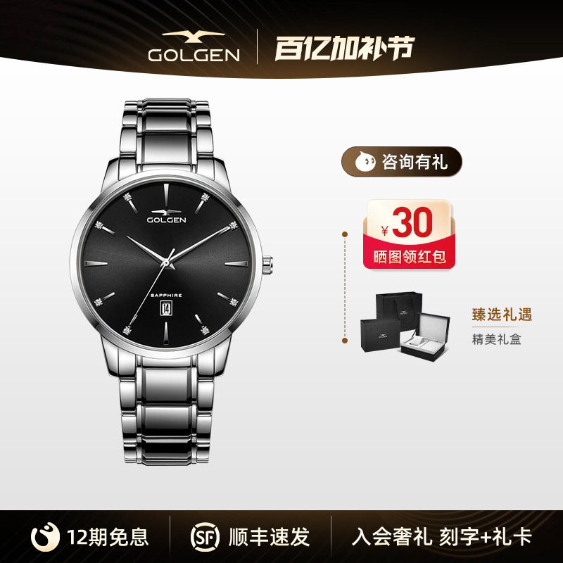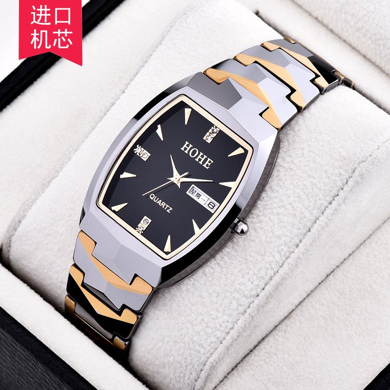 正品钨钢手表 男士超薄双历防刮耐磨腕表 日本机芯蓝宝石镜面男表