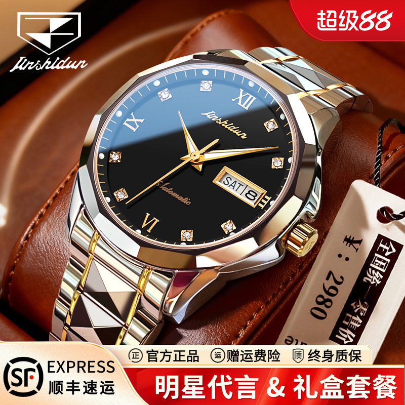 正品金仕盾手表男机械表全自动2026新款时尚简约防水钨钢品牌男表
