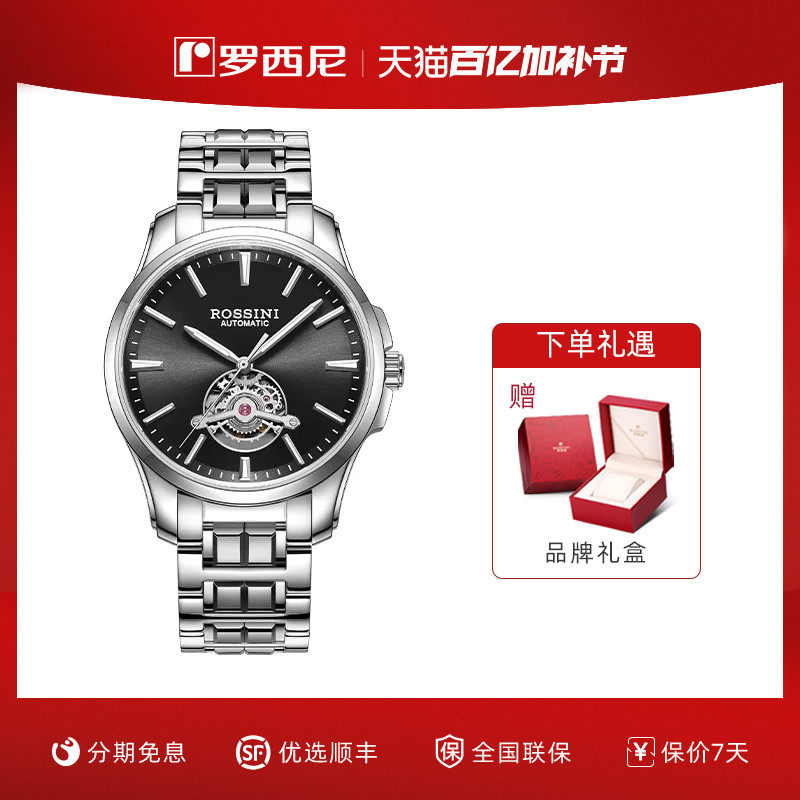 罗西尼手表男钨钢系列官方正品男士机械表防水夜光镂空男表送老公
