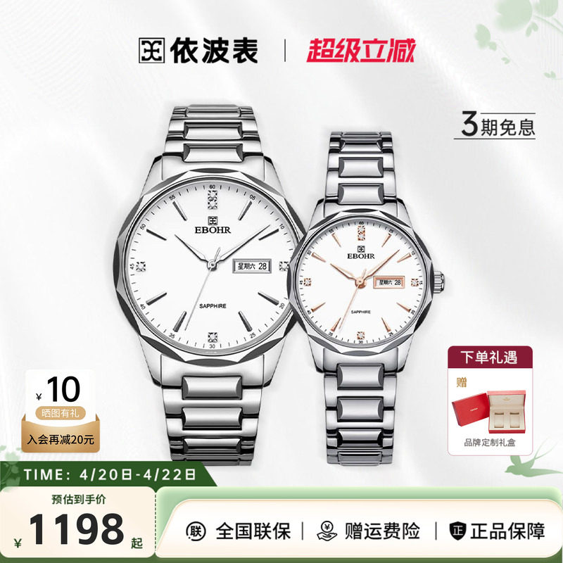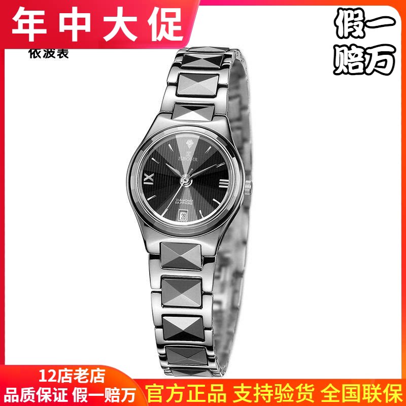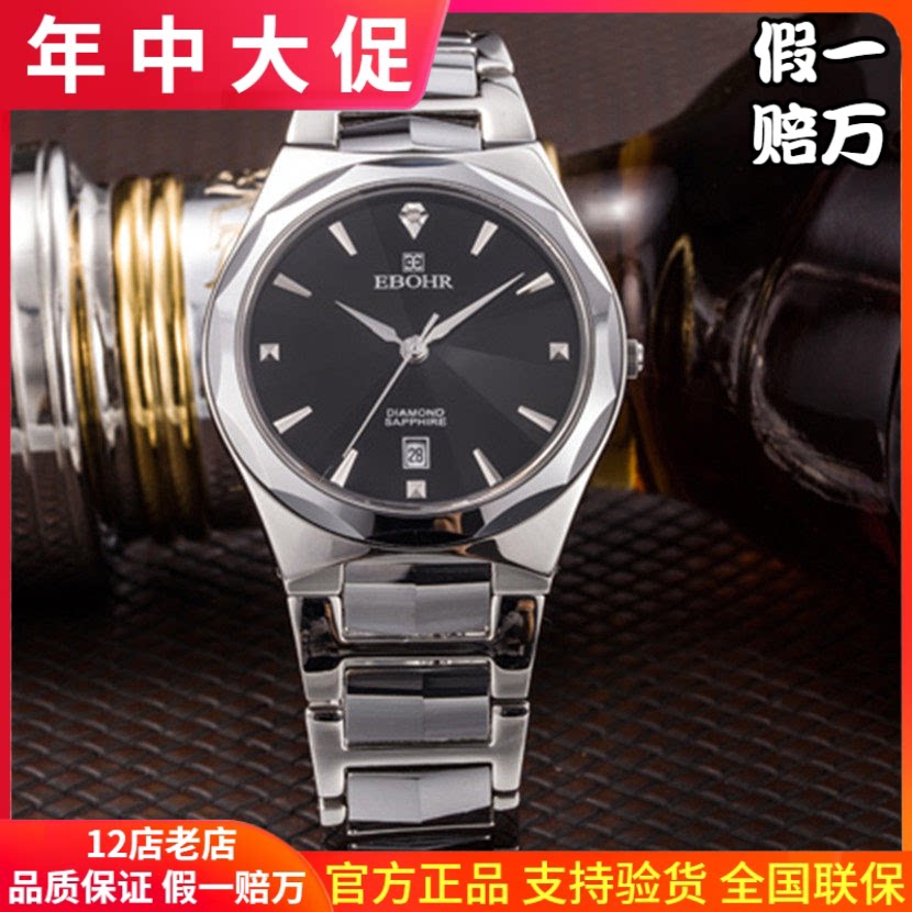 依波表EBOHR情侣款手表男女表钨钢表圈双日历防水时尚腕表5633