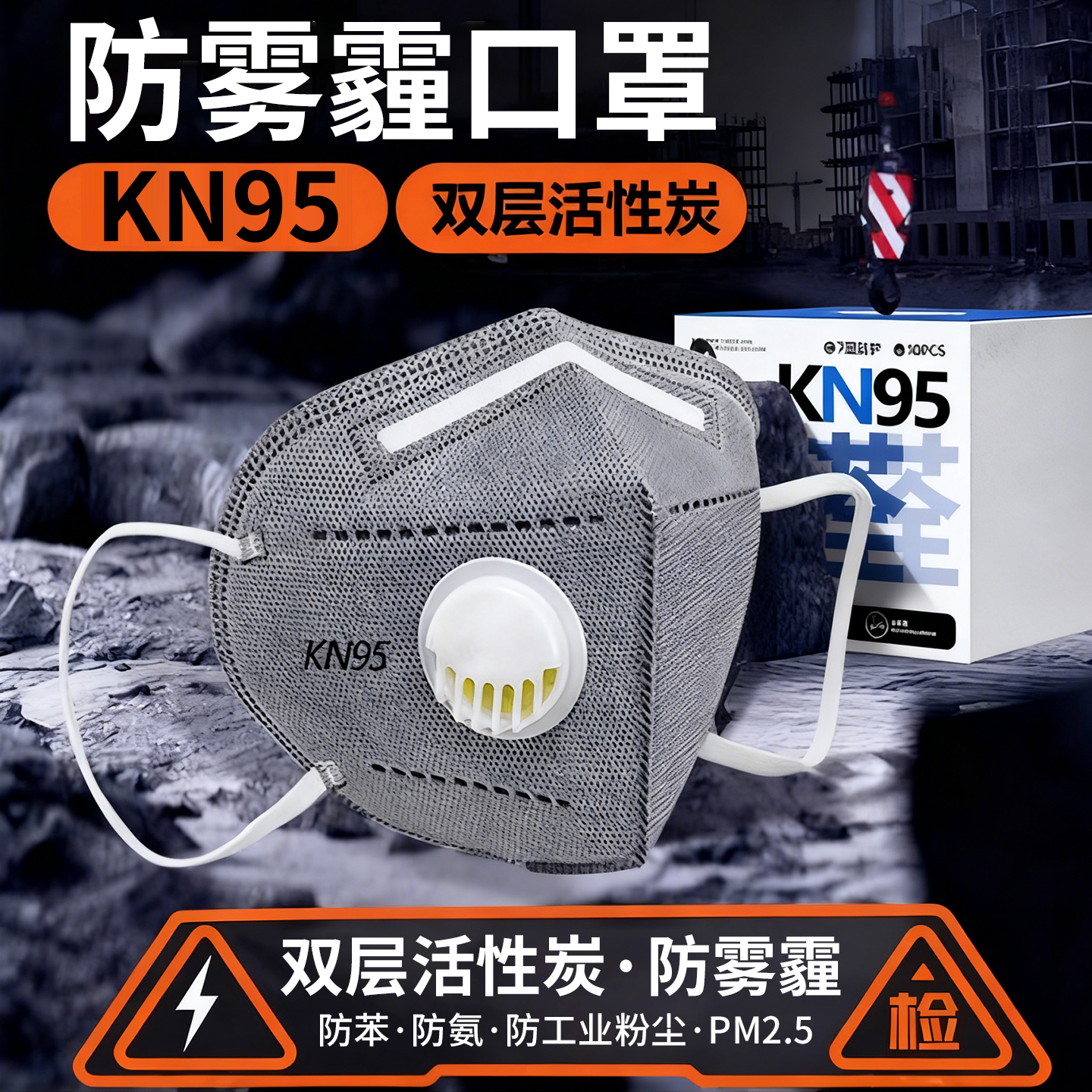 活性炭防尘口罩KN95含呼吸阀防工业重度粉尘冬季加厚防雾霾PM2.5