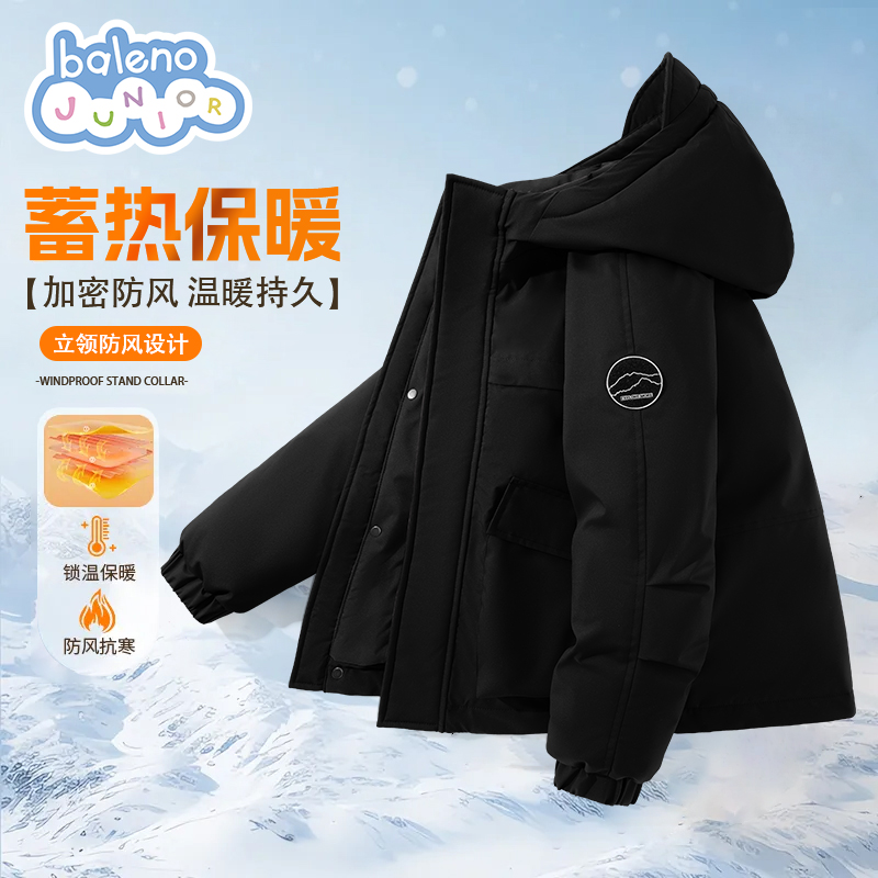 班尼路童装男童棉服2025新款儿童冬季棉袄男大童冬装防风连帽外套