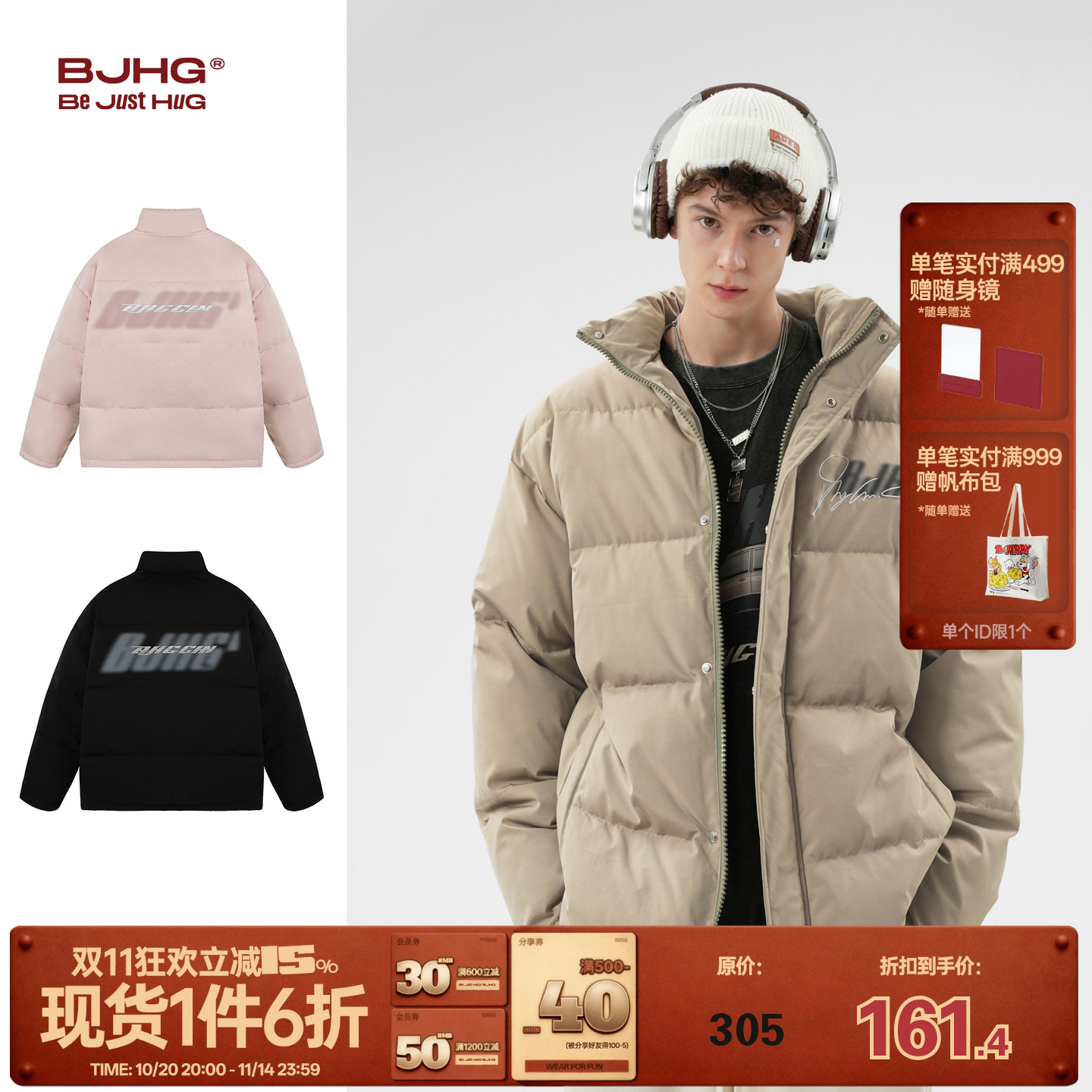 BJHG不计后果面包服棉服男款冬季潮牌宽松美式情侣装运动棉衣外套