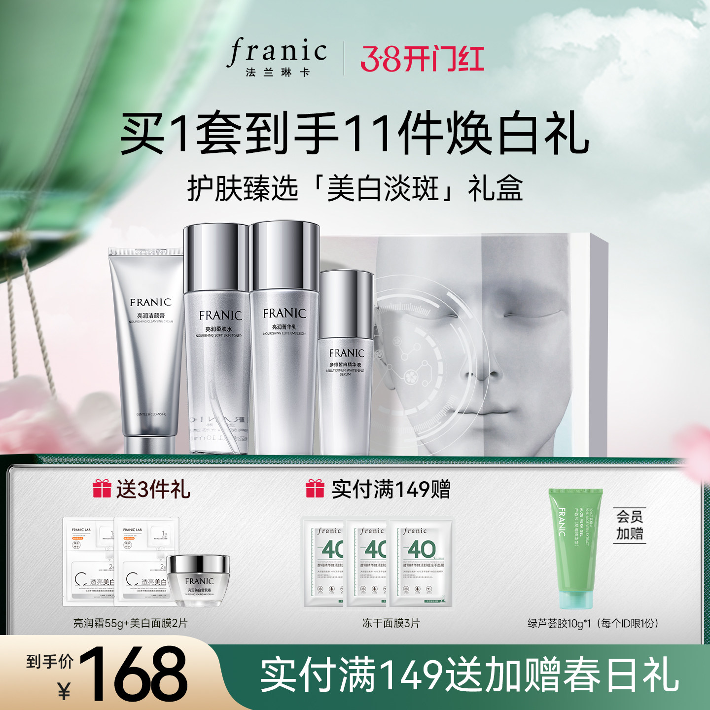 【女神节礼物】法兰琳卡美白淡斑补水提亮护肤品套装紧致水乳礼盒