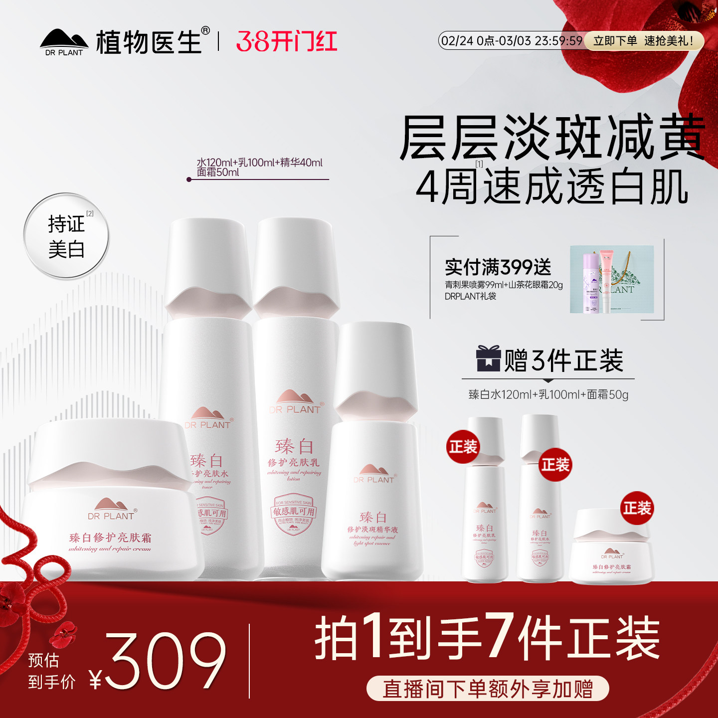 【38立即抢】植物医生官方旗舰店臻白美白淡斑水乳套装补水护肤品