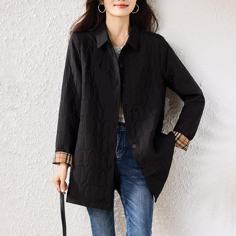 格子卷边长袖休闲百搭韩系2025秋季新款宽松休闲风衣女装外套V828
