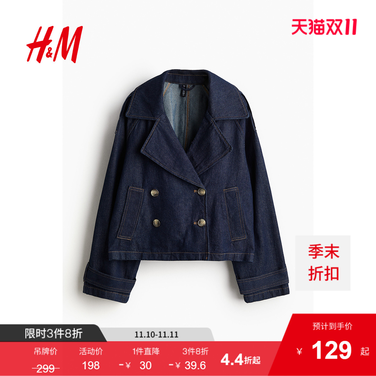 HM女装短外套秋季设计感廓形休闲双排扣大廓形长袖短风衣1250175